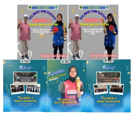 Satu demi satu prestasipun didapatkan oleh MAN 5 Jombang dari mulai Juara 1, 2 dan 3.